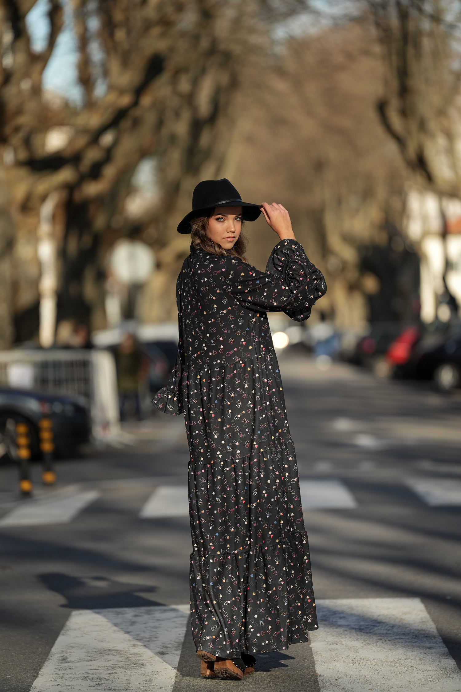 -Long dress with bow at the neckline