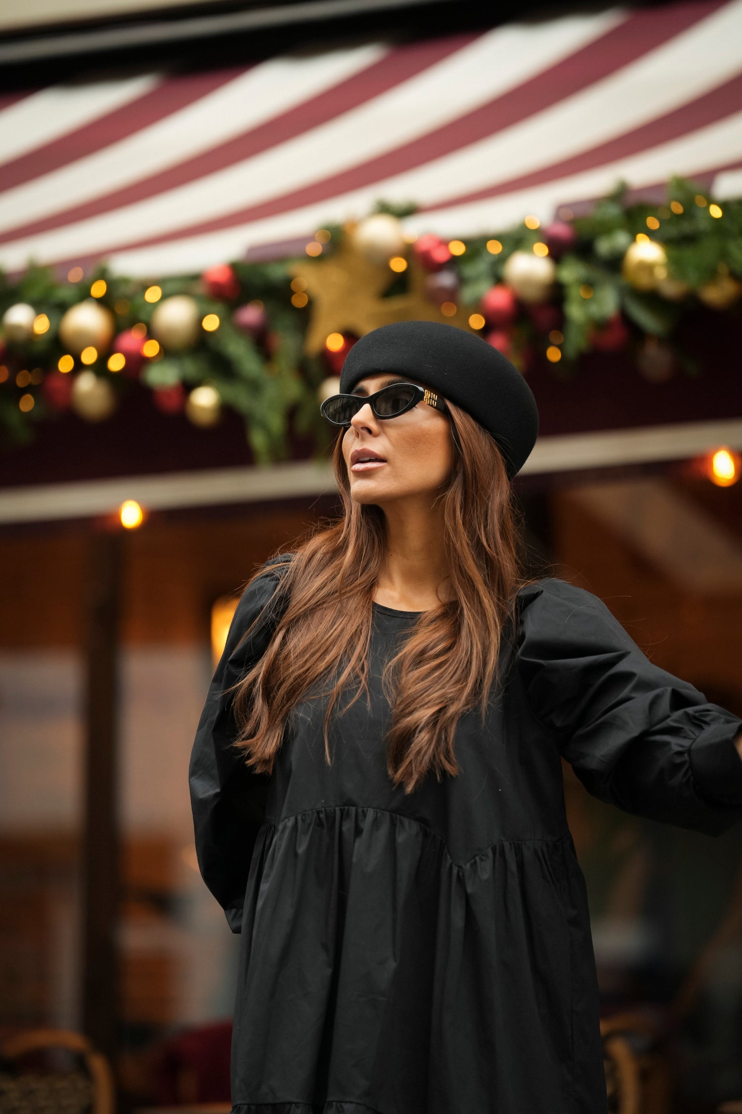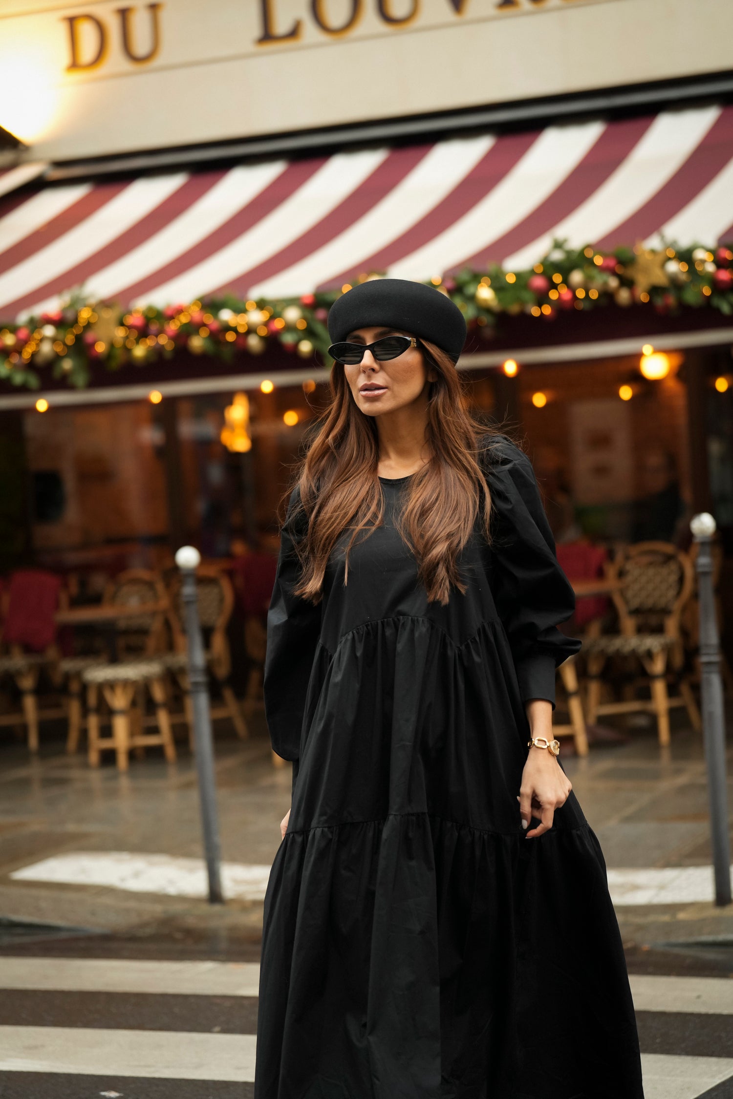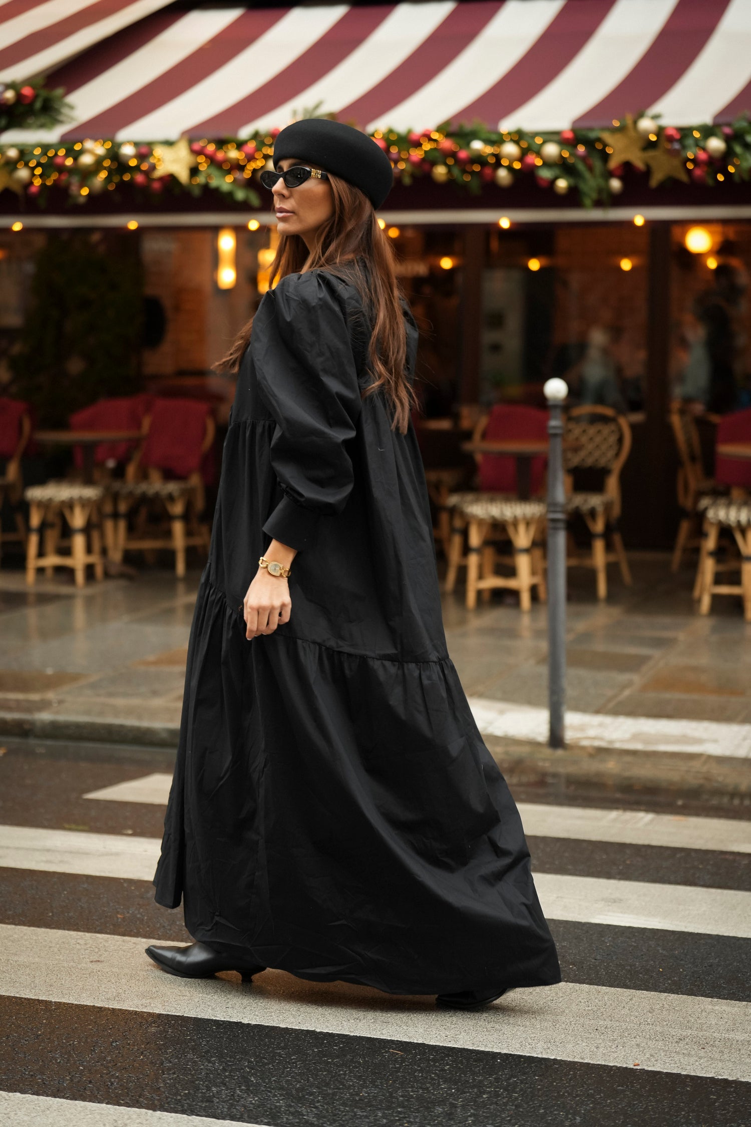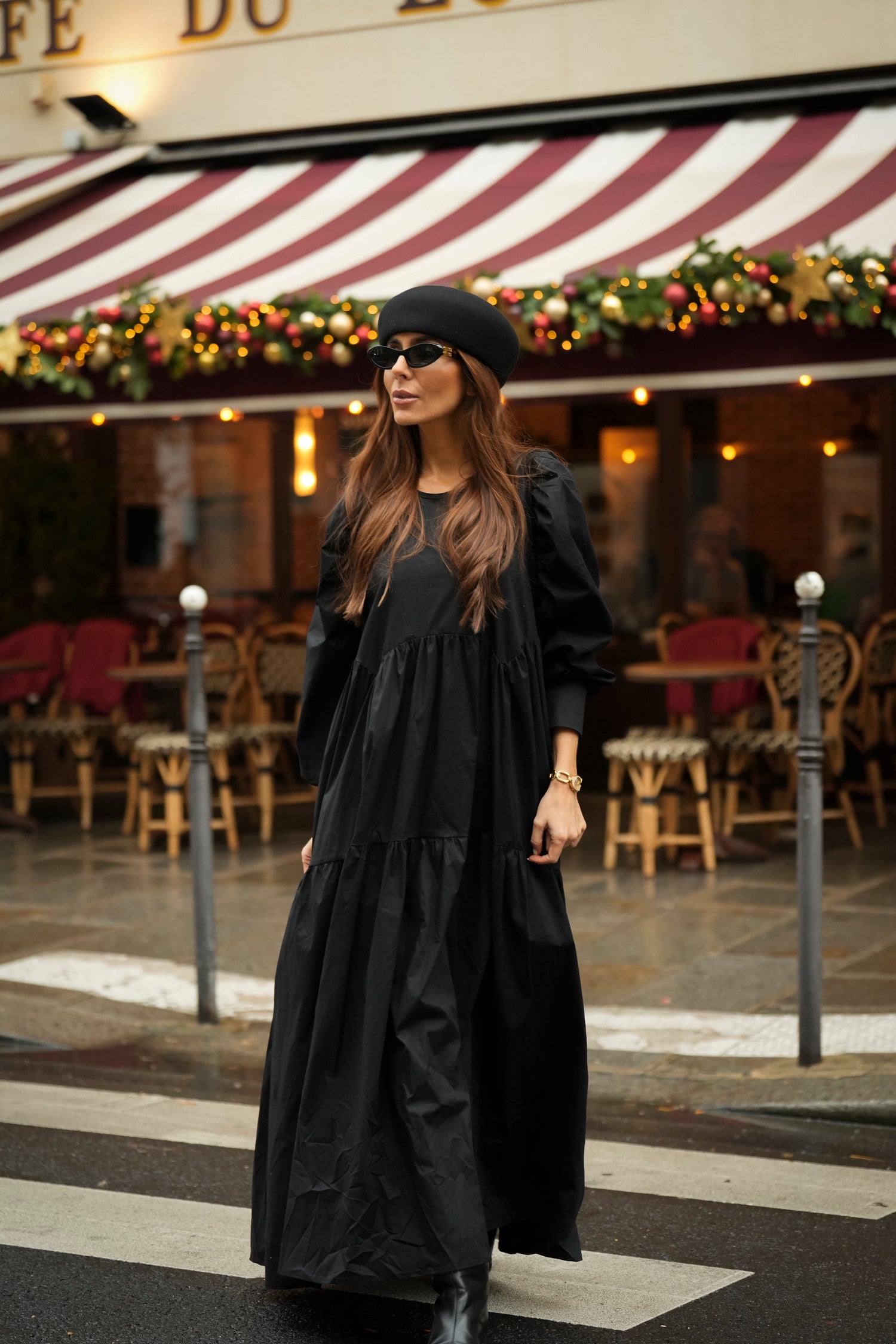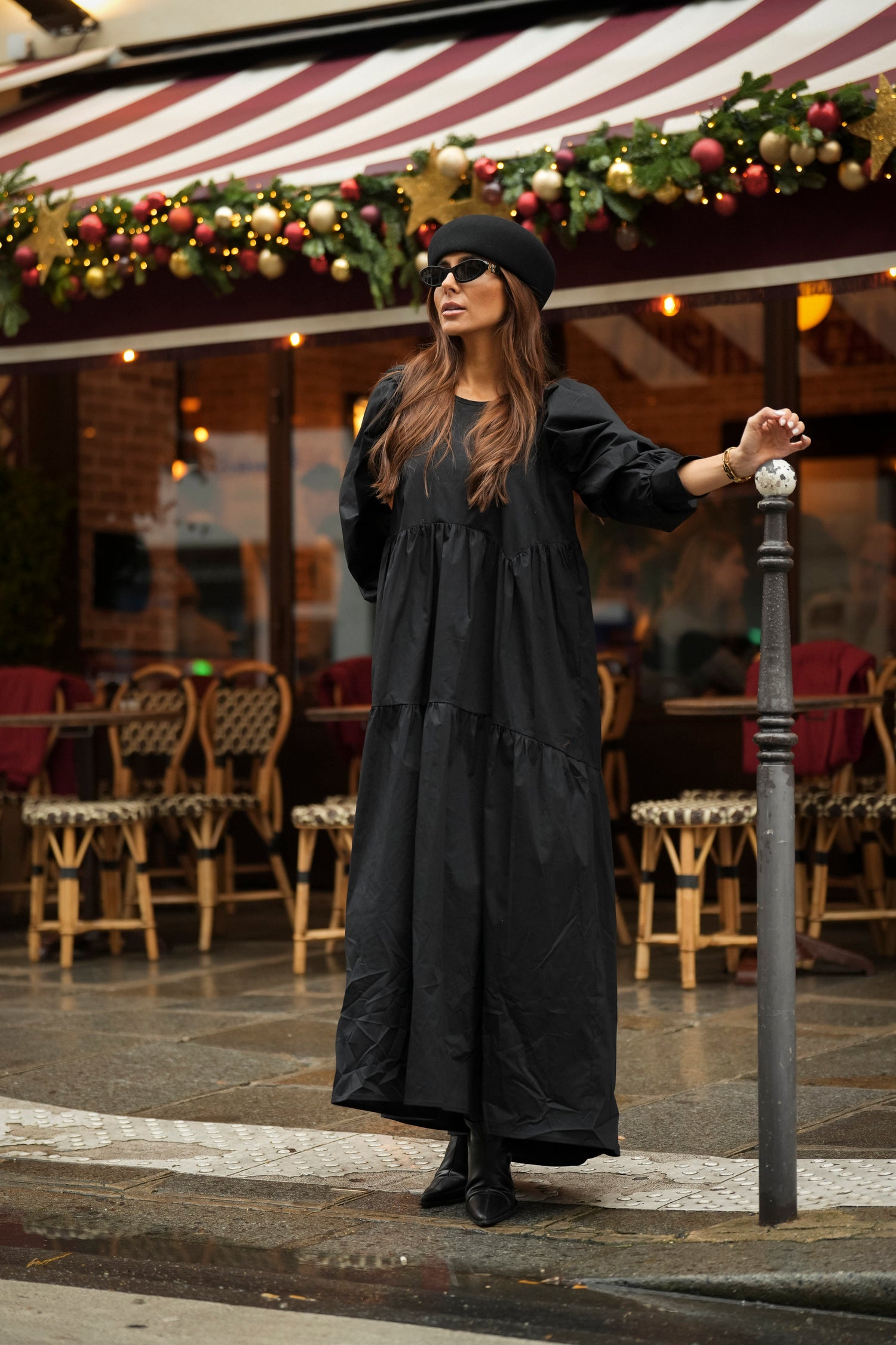 Vestido comprido com folho em preto